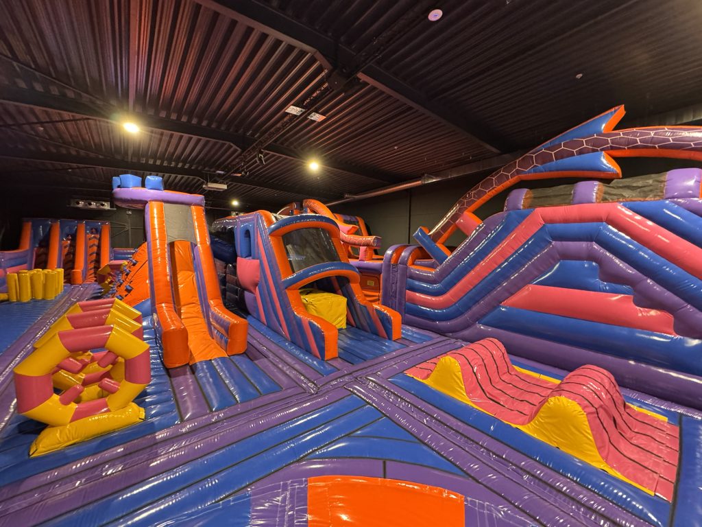 One of the standout projects of the year was a significant installation for OWAZA, a new client based in Charleroi, Belgium. For OWAZA, we designed and delivered a large, two-level inflatable park that offers a dynamic and engaging experience for visitors. The innovative layout starts on the mezzanine and flows seamlessly to encompass the entire ground floor, with various inflatable sections interconnected by an impressive, substantial ramp slide. This thoughtful design maximises both play value and visitor flow, ensuring a memorable experience for all ages.